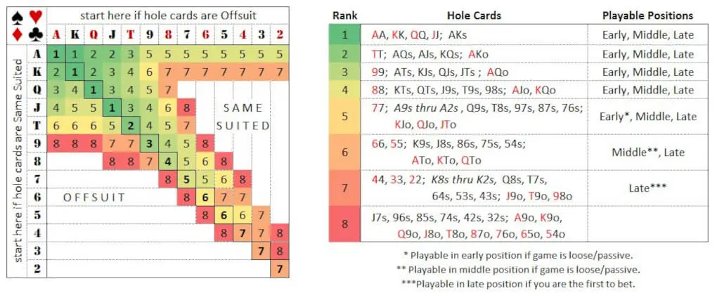 Texas Hold’em strategy chart is a nice tool if you’re still fresh at the game. Next time you play make sure you have one in hand.